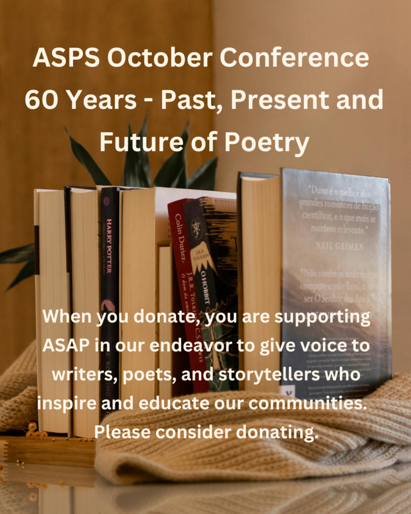- Provide opportunities for ASPS members to work together and to collaborate on the publication of poetic works, chap books, or full anthology collections.